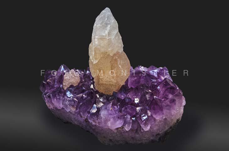 cristallo di cm.12 circa, su ametista. Lajedo, Rio Grande Do Sul, Brasile. Esposto a Bologna 2014